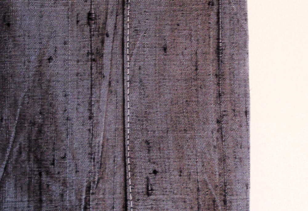 - ¾ yard of 44-45″ wide fabric for the dark colored blocks on the left front and for the entire back: we used silk dupioni in Iridescent Platinum from Fabric.com