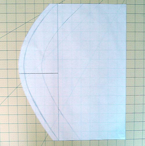 - Draw a curved shape onto the paper pattern. Start at the top center point and swoop down to the bottom center point. You can freehand this curve (what we did), use a hip-curve ruler or use a roundish item from your home, like a large bowl, plate or pot. You want a smooth, gentle curve.