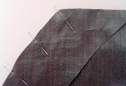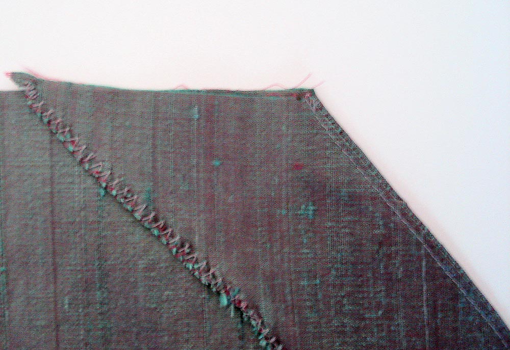 - Run a zig zag stitch along the entire raw edge of the facing. This will help prevent the fraying that is so common with silks. You could also use a serger for this step.