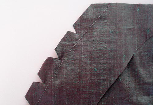 - Clip small triangle shapes out of the curved edge seam allowances every ¾- 1″ along the length of the curved edge, being very careful to not cut through the seam. These notches provide easing for the curve to help the seam allowance lay flat when you turn the facing under.