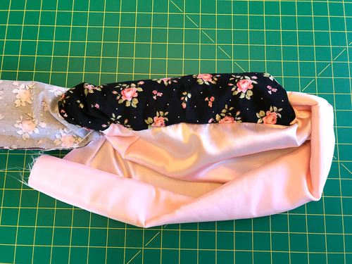 - Flip over the whole thing. Now the fabric roll is wrong side up on top and the cuff is right side up and flat underneath so its original center crease line is visible.