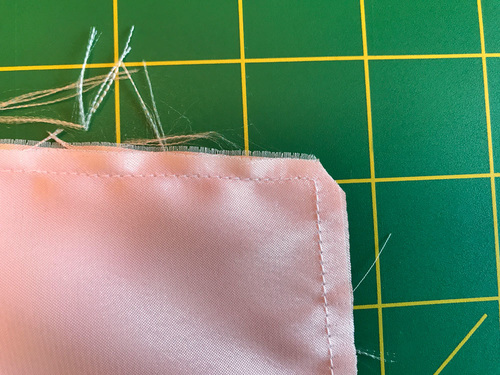 - Clip the one sewn corner at a diagonal, making sure to not cut into the seam. Do not clip the folded corner.
