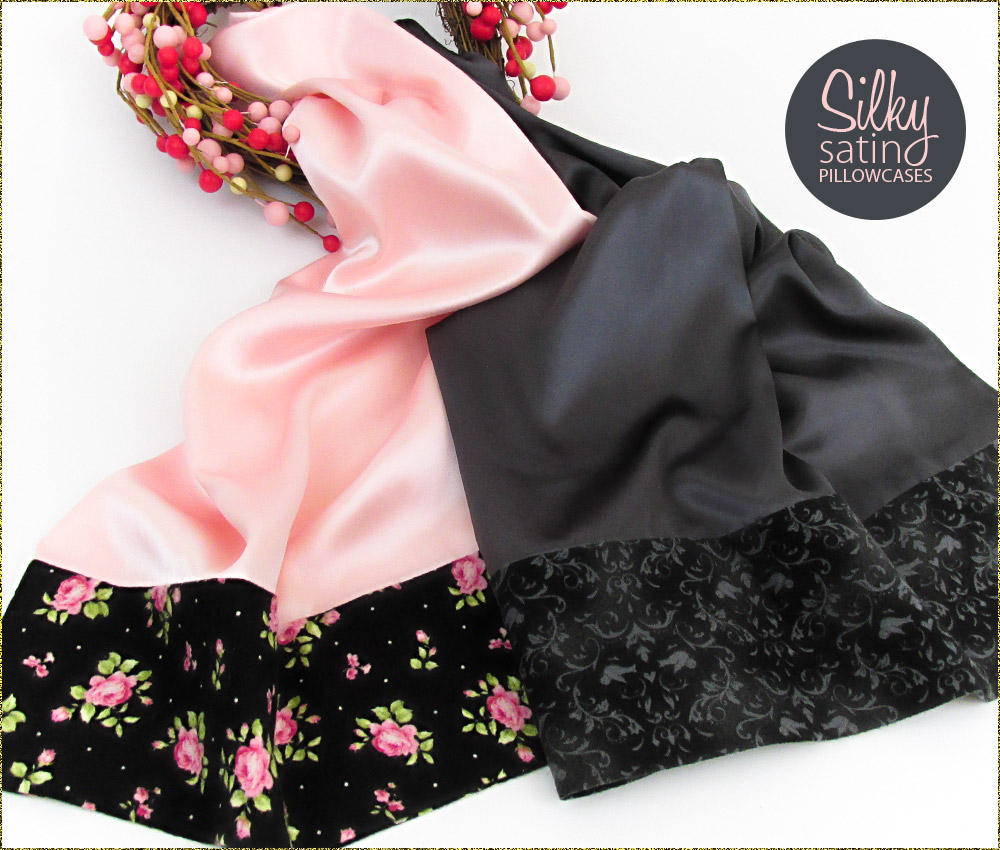 Pillowcases are a fast and easy project – perfect for beginning sewers. These lovelies combine the silkiness of solid satin with the pretty softness of flannel. We’ve used the “burrito style” construction method for this pillowcase project, which creates nicely finished seams inside and out with an easy roll-and-turn method.
