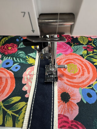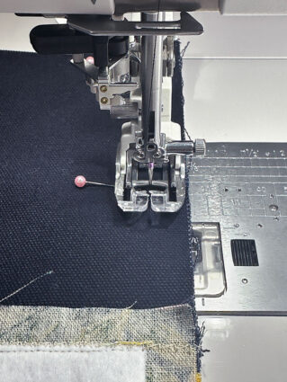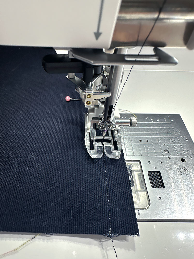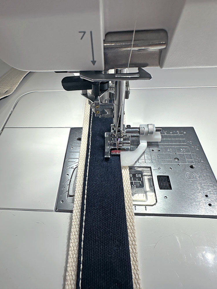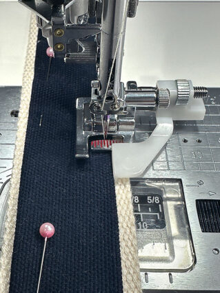 - If possible, attach an Edge Guide foot to allow for a super precise line of topstitching very close to the folded edge of the canvas strip, using the edge of the canvas itself as your guide. This is one of our favorite Janome presser feet.