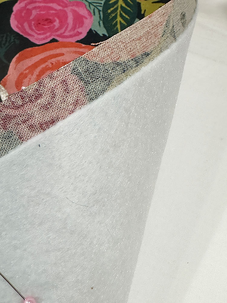 - Fold down the exterior all around, forming the interior facing. Pin in place all around.