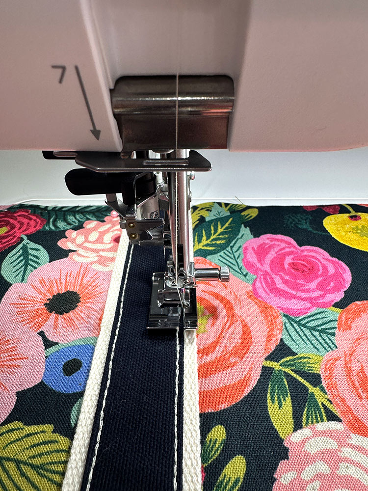 There are extra details about the specific Janome presser feet we used, because – repeat after me: “using the right presser foot for the job is always important!” This goes for stitch selection as well. Your machine surely came with more than one stitch setting. Experimenting with the type, length and width of stitches can open up a world of possibilities. The contrasting topstitching on our tote’s navy canvas is achieved with a lengthened Triple Stitch, and for the bold horizontal lines across the bag base, we used the same stitch but with a twin needle. Bring your scraps to your machine and try something new!