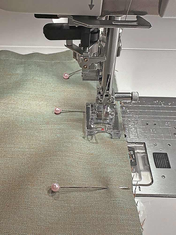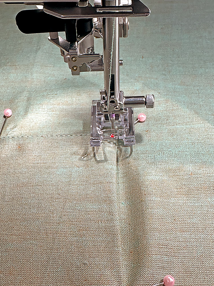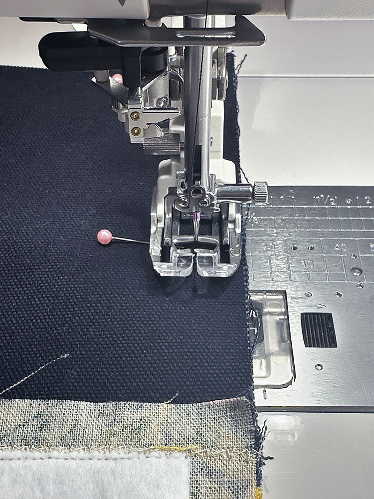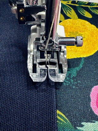 NOTE: You can try other presser feet to get your best result, but do practice first on scraps to make sure you can get the look you want. If you can’t find a stitch similar to a Triple Stitch, you could instead use a standard lengthened straight stitch in a heavier thread.