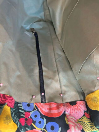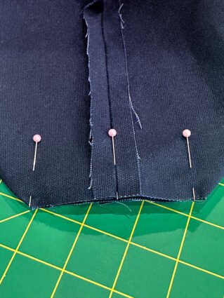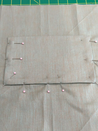 - Place the fused pocket panel right side together with the lining pocket panel. Pin along the top edge only.