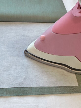 - You can use a pressing cloth to lightly fuse from the back side of the panels. Then flip over both panels and press firmly from the front, following manufacturer’s instructions, to fully adhere.