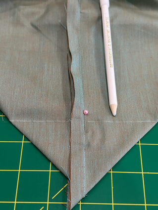 - Topstitch across the pocket 1½“ down from the pocket’s top seamed edge. This creates a faux hem.