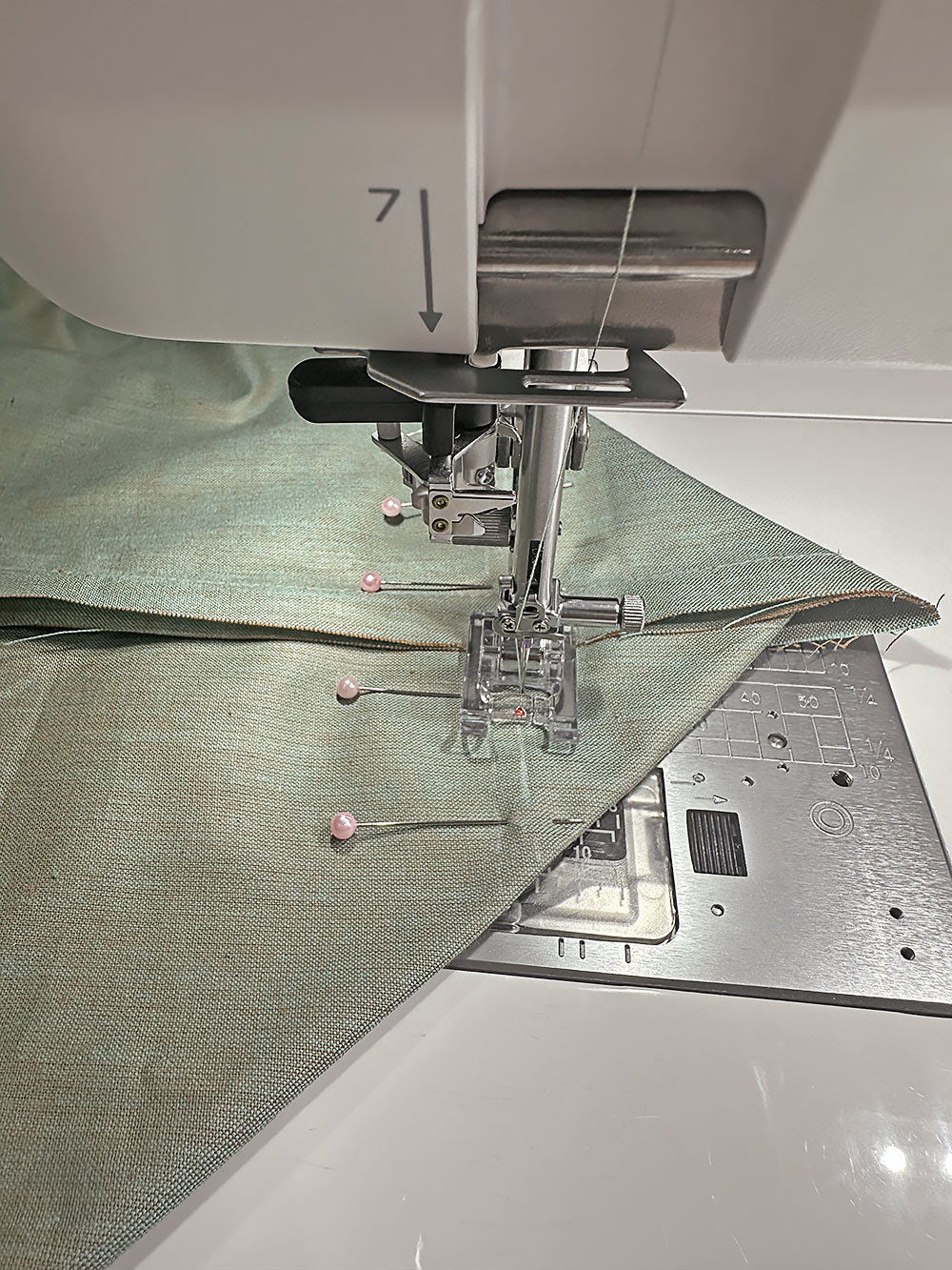 - We switched back to a standard Satin Stitch foot. Re-thread with thread to best match the lining fabric in the top and bobbin. Keep a standard straight stitch.