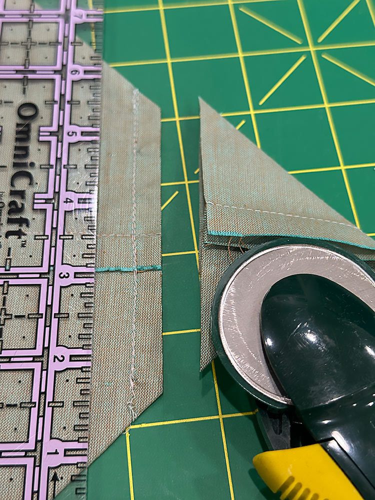 - Trim away the peak to ½” from the line of stitching.