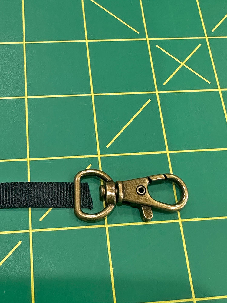 - Find the length of ribbon and the swivel clip.