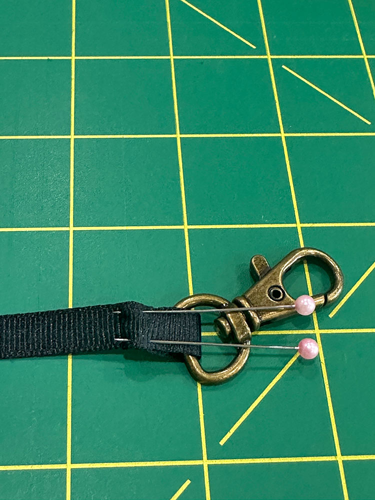 - Pull the end through and turn under the raw edge to make a tiny hem. Pin in place.