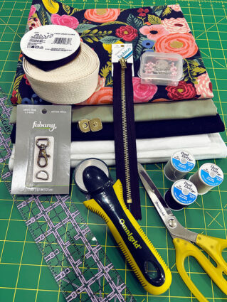 - Scrap or ⅓ yard of 20” + wide lightweight fusible interfacing – just need just a 12” x 15” panel for the optional zipper pouch; we used Pellon Shape-Flex woven interfacing