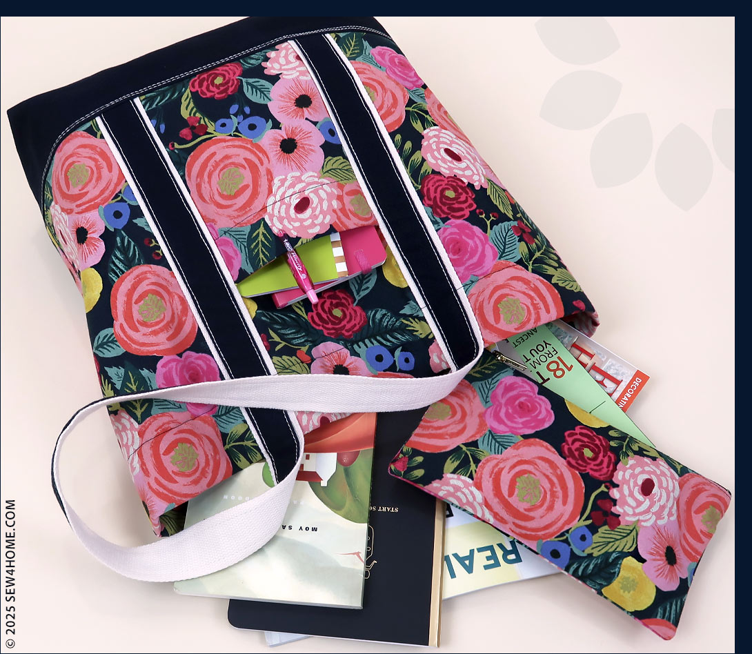 With this common challenge in mind, we added instructions for a swivel clip on a lanyard secured under the tote’s facing. Use the clip for your keys or attach a matching drop-in zipper pouch as we did. The instructions for the pouch are summarized below, but you can click through to the full, free S4H project tutorial for all the steps.