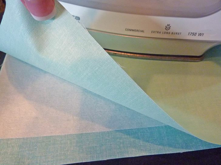- Re-fold the square, sandwiching the interfacing between the layers. Press again.