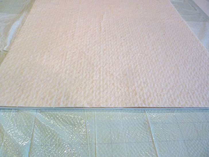 - Find the 16″ x 20″ batting. Place the batting on top of the foam core, aligning all the edges.