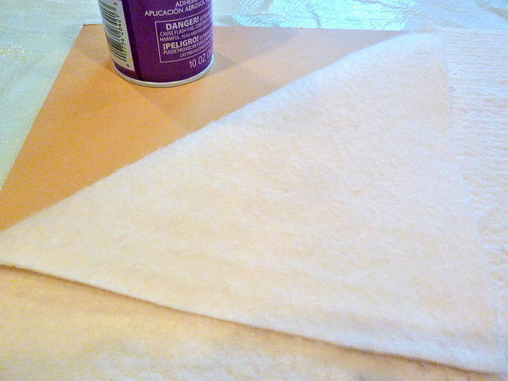 NOTE: The adhesive adheres quickly, so be careful and go slowly, making sure you have things where you want them the first time. - Repeat to adhere the opposite site of the batting to the foam core.