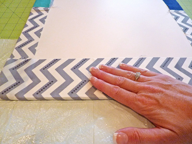 - Wrap that edge tightly around the foam core and flat against the back. Press it in place with your hands.