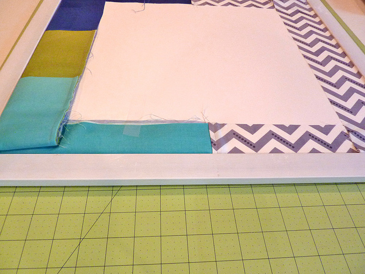 - Using a ½” seam allowance, stitch the two panels together. Press the seam allowance toward the push pin panel.