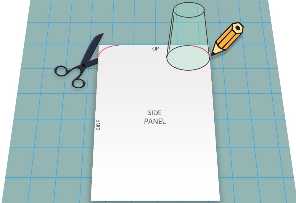 - Find a small juice glass or other small round object. Place the glass in each of the top corners (one of the 9½” sides) and trace the outside curve.