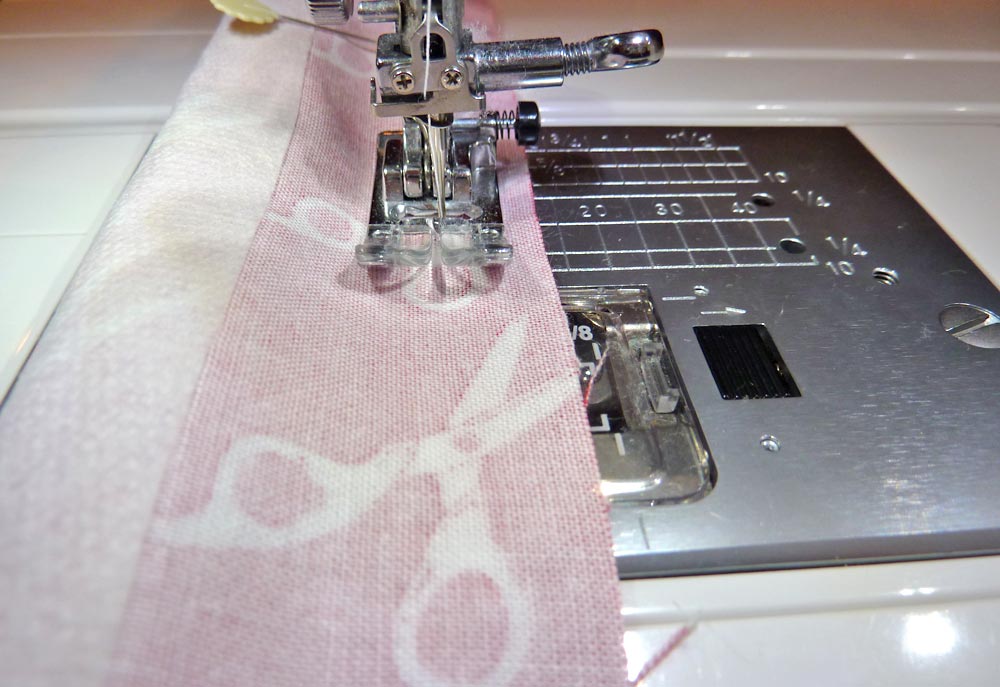 - Run parallel vertical rows of stitching to quilt each pair together. Our rows are 2″ apart. We used a quilting bar to keep our rows equi-distant.