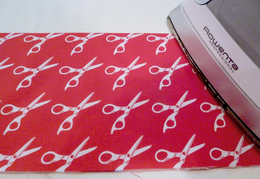 - Press well, turning in the raw edges of the opening ½” so they are flush with the sewn seam.