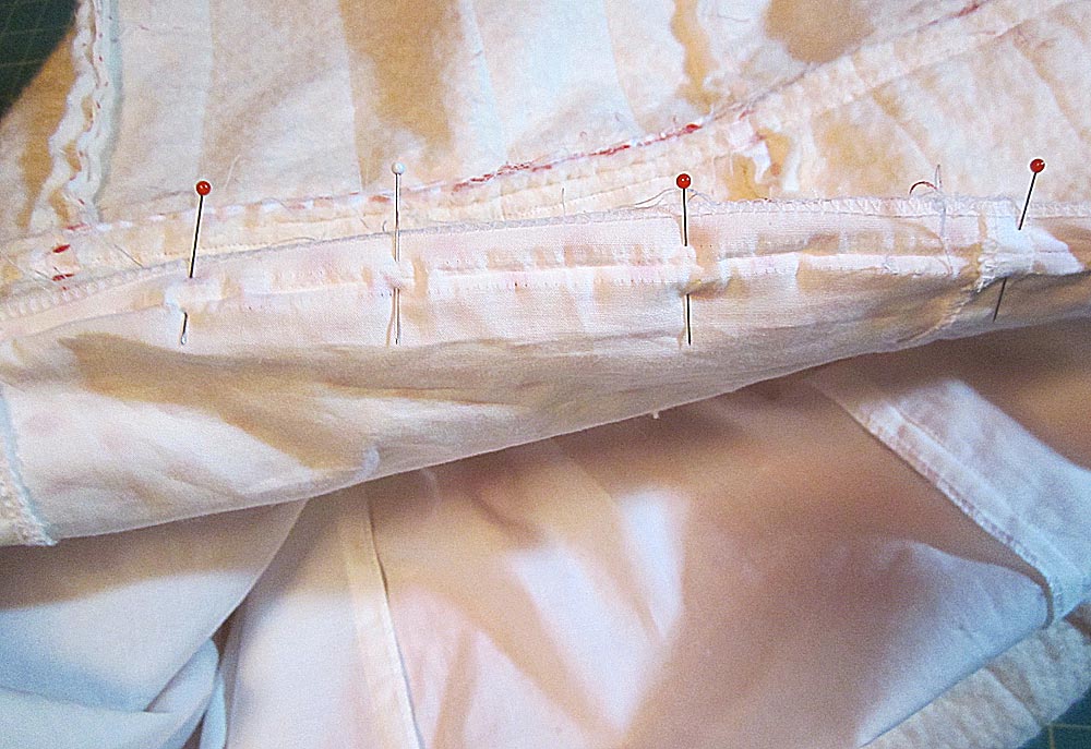NOTE: Remember, we serged the bottom raw edge of our lining box way back when, which is why this edge is finished in the photo below.