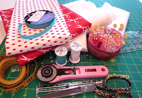 The original cover was made in Moda’s Half Moon Modern, an older collection that is no longer readily available. Luckily, sewing themed fabrics are always in fashion, so it’s easy to find a great selection of fun fabric that would work well.