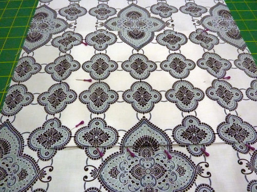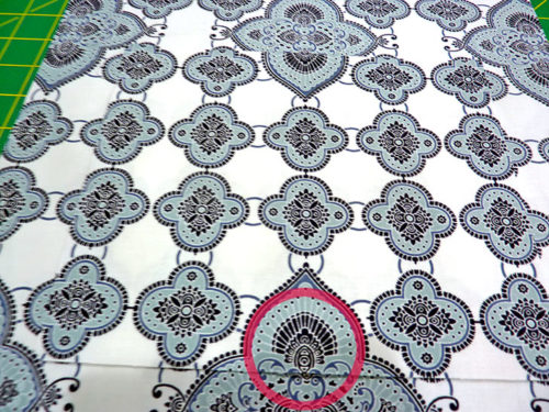 Using the assembled flap pattern, cut ONE - From the lining fabric (the medallion print in our sample), cut the following: