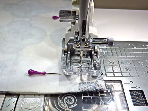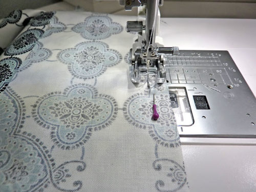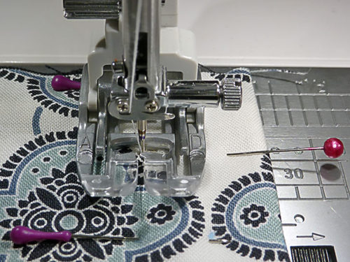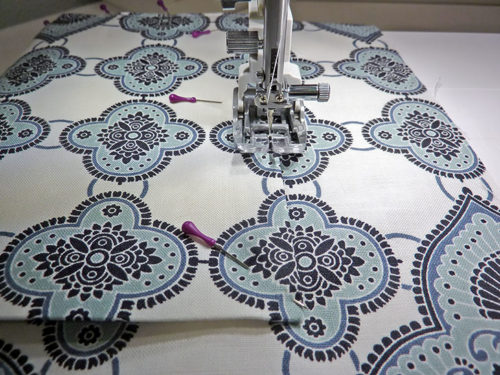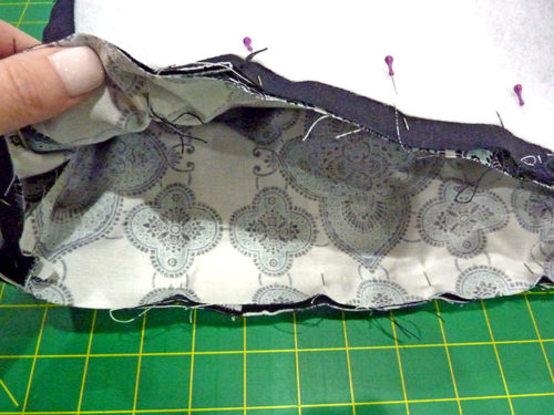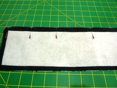 - Pin in place along both sides and across the bottom. Leave an approximate 3″ opening along the bottom for turning.