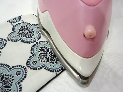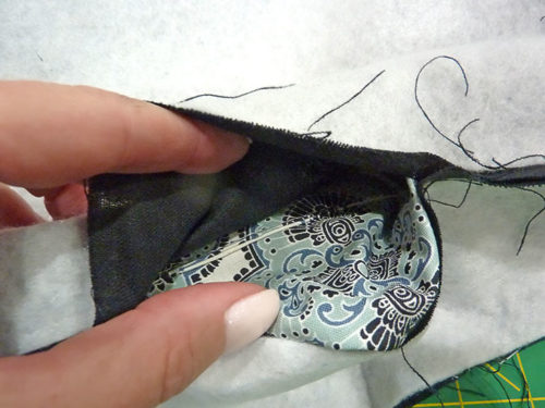 - Turn the pocket right side out through the opening. Gently push out the corners so they are nice and sharp. Press flat, pressing in the raw edges of the opening so they are flush with the sewn seam. Find one of the two lining panels. It doesn’t matter which one at this point, unless you matched your pocket to a specific panel. If so, grab that panel.