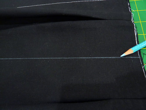 - Using the original paper pattern as a guide, mark for the two sets of inverted box pleat. You are marking FIVE lines: three solid and two dotted. You can mark these in different colors or simply keep track in your head which is which.