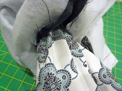 - Using a ½” seam allowance, stitch along the top and both sides.