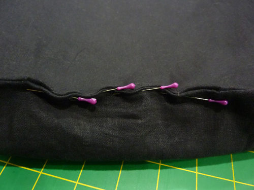 - Add a few pins along the drawn line to keep the pocket flat against the main panel.