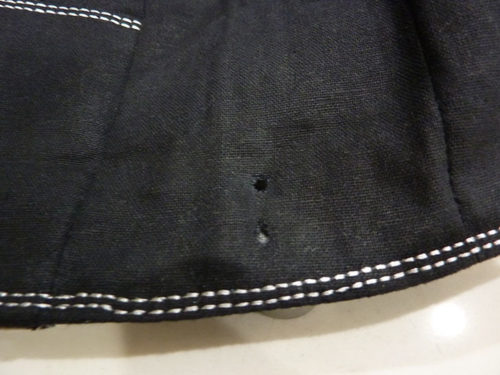 - Insert the top rivet from the exterior through to the lining. The post of the rivet should just be visible through the hole I’m the lining layer.