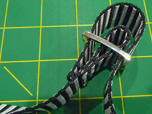 - The keys to keep in mind are to stitch the adjustable slider in place, keeping the seam as close to the hardware as possible.
