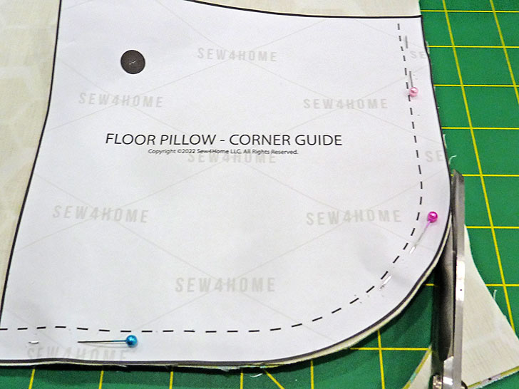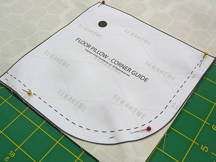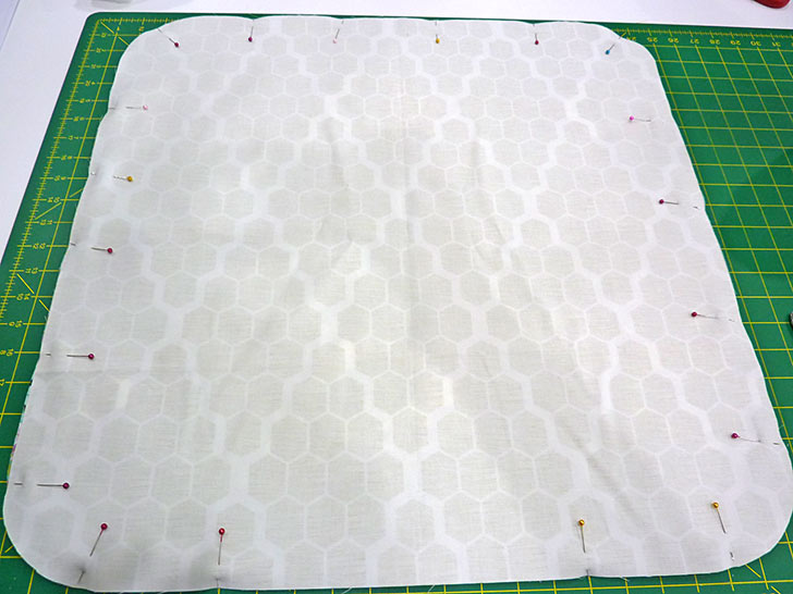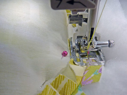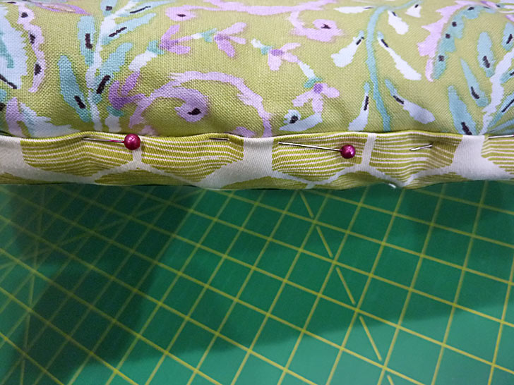 - Pin the cover in place, keeping your pins inside the seam line so the seam allowance is free all around.