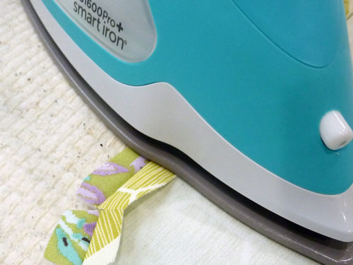 - Press open the seam allowance, pressing back the raw edges along the 10” opening so they are flush with the sewn seam.