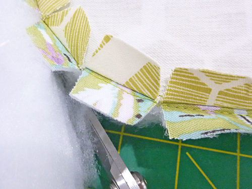 - Trim back the batting as close to the seam as possible around the entire perimeter.