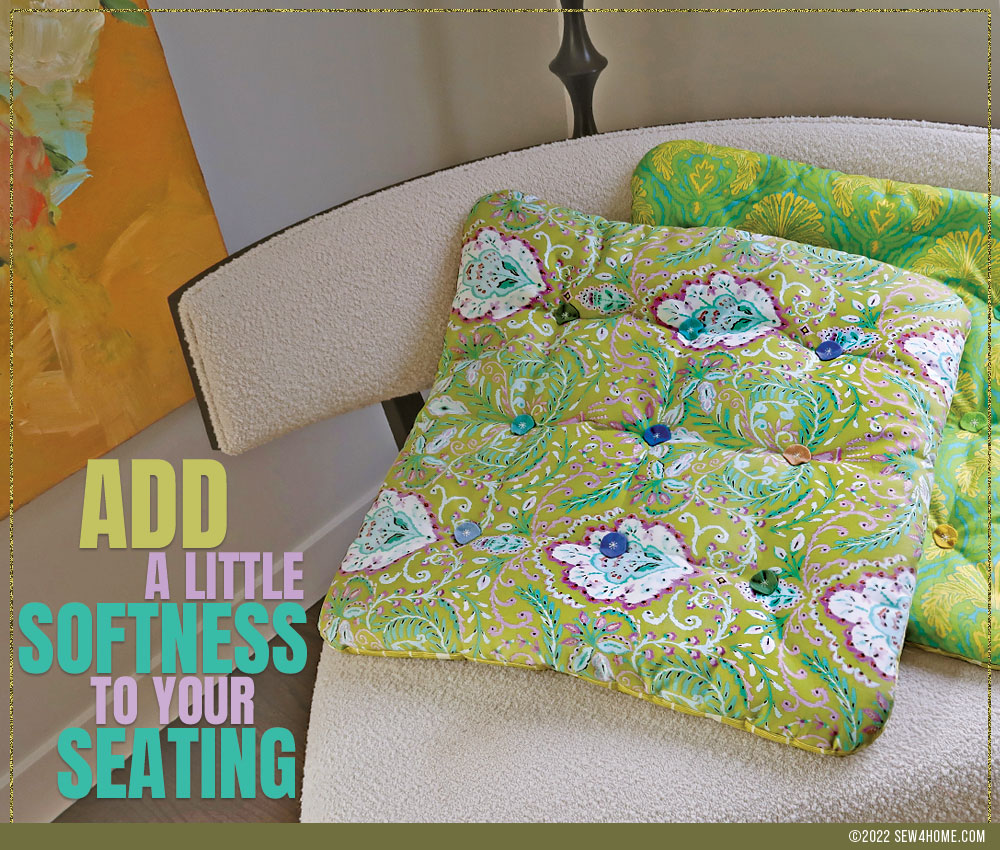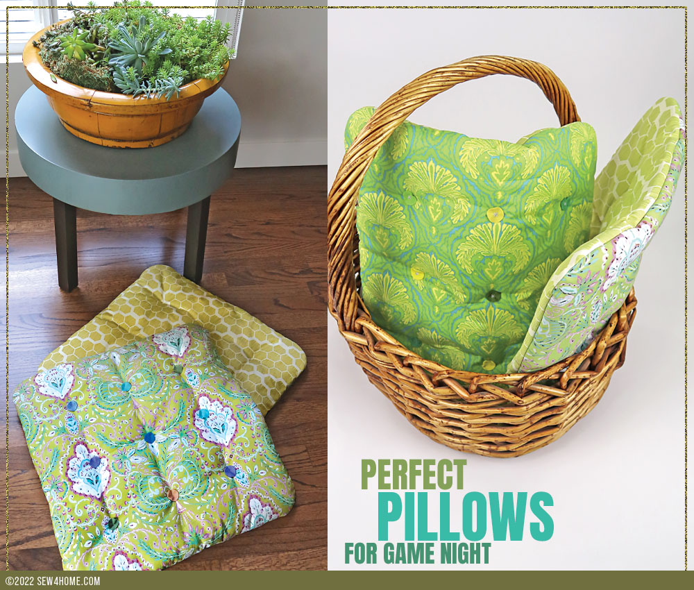 Have a seat! Lightly padded and tufted with soft felt and floss rather than hard buttons, these floor pillows make fast and easy extra seating. If you’re brand new to tufting, a slim style cushion like this is a great first project as there is less bulk to pull through.