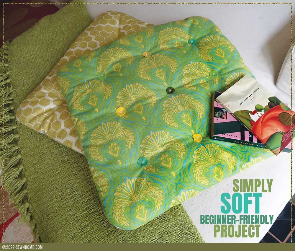 With simple side seams rather than a side wall or gusset, our floor pillow is a fun beginner friendly project. You could finish several in a single afternoon.