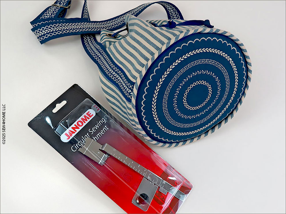 Our friends at Janome America selected a range of accessories to feature this year in order to bring attention to standard and optional tools that can help make your sewing easier, more precise, and often – more fun! One of our mottos here at S4H has always been, “Use the right tool for the job!” That’s really the rule for any hobby – from cooking to woodworking. In sewing, it makes the difference between a finish that is “just okay” and one that makes you want to jump up and down in delight. Our special tool of choice for this project: the Janome Circular Sewing Attachment