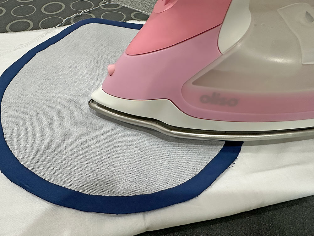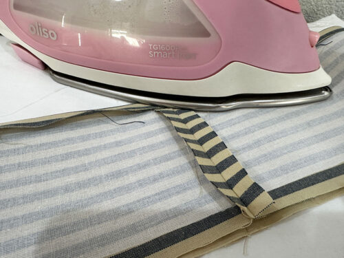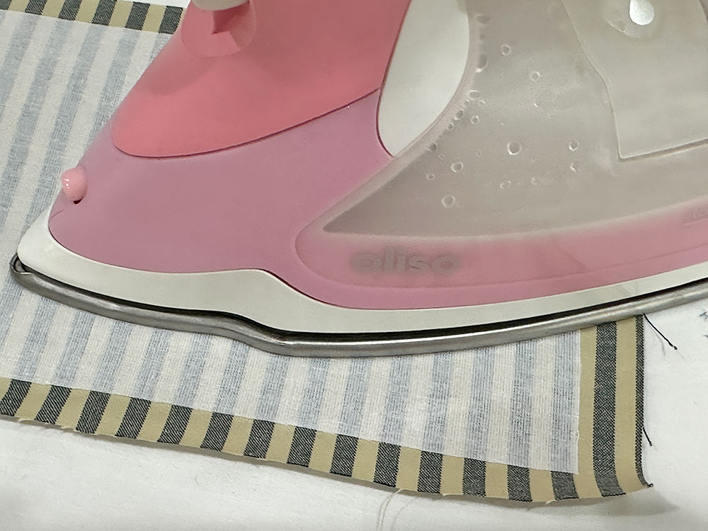 - Press flat, pressing in the seam allowance along the opening so it is flush with the sewn seam.