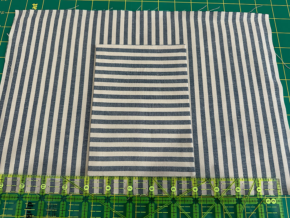 ONE 6” wide x 15” high rectangle for the exterior pocket – if using a stripe, cut on the horizontal