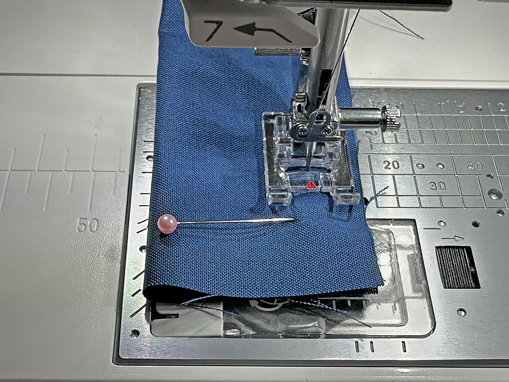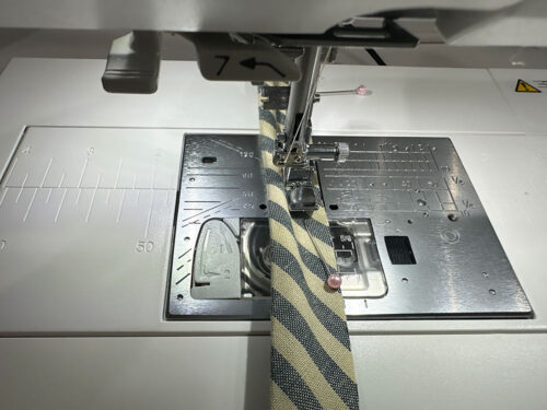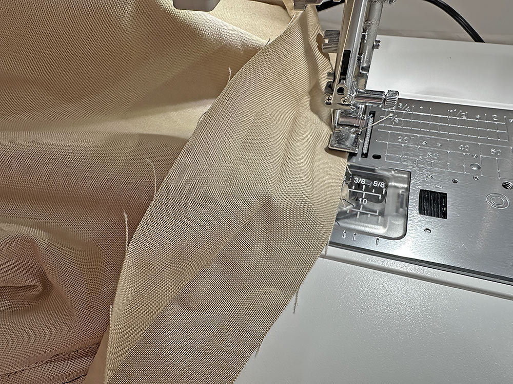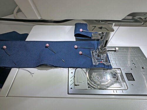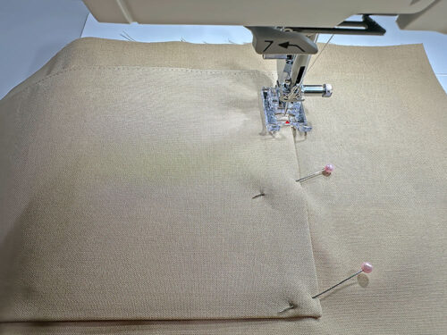 - Re-set for a standard straight stitch and, using a ½” seam allowance, stitch both side seams.