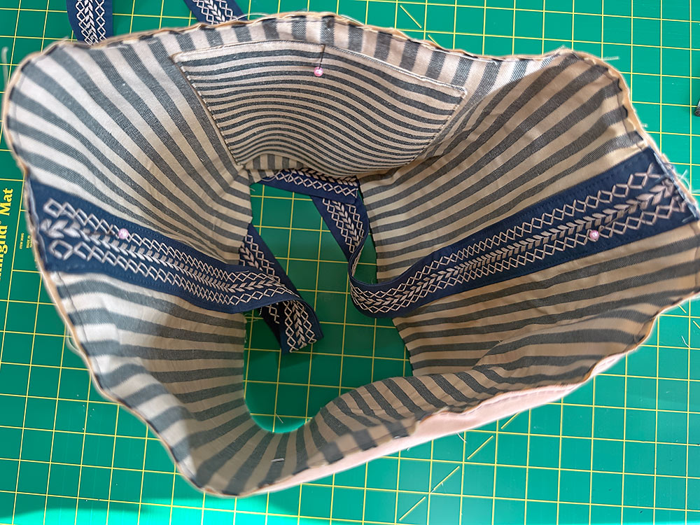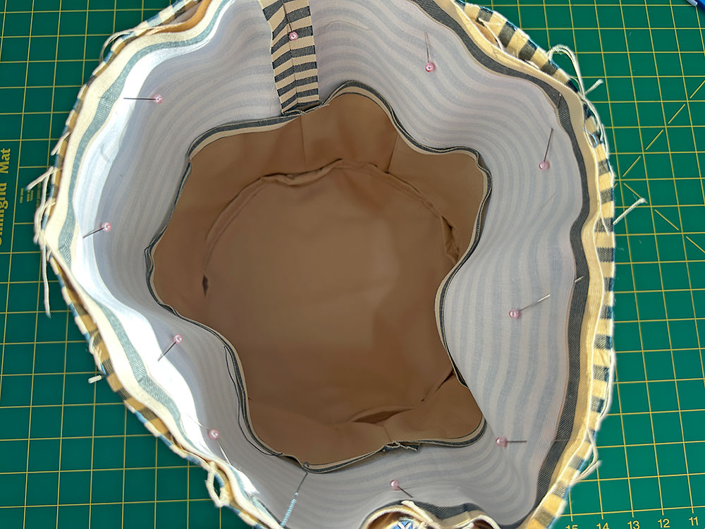 - Here’s a shot looking down into the bag. Pin all the way around.