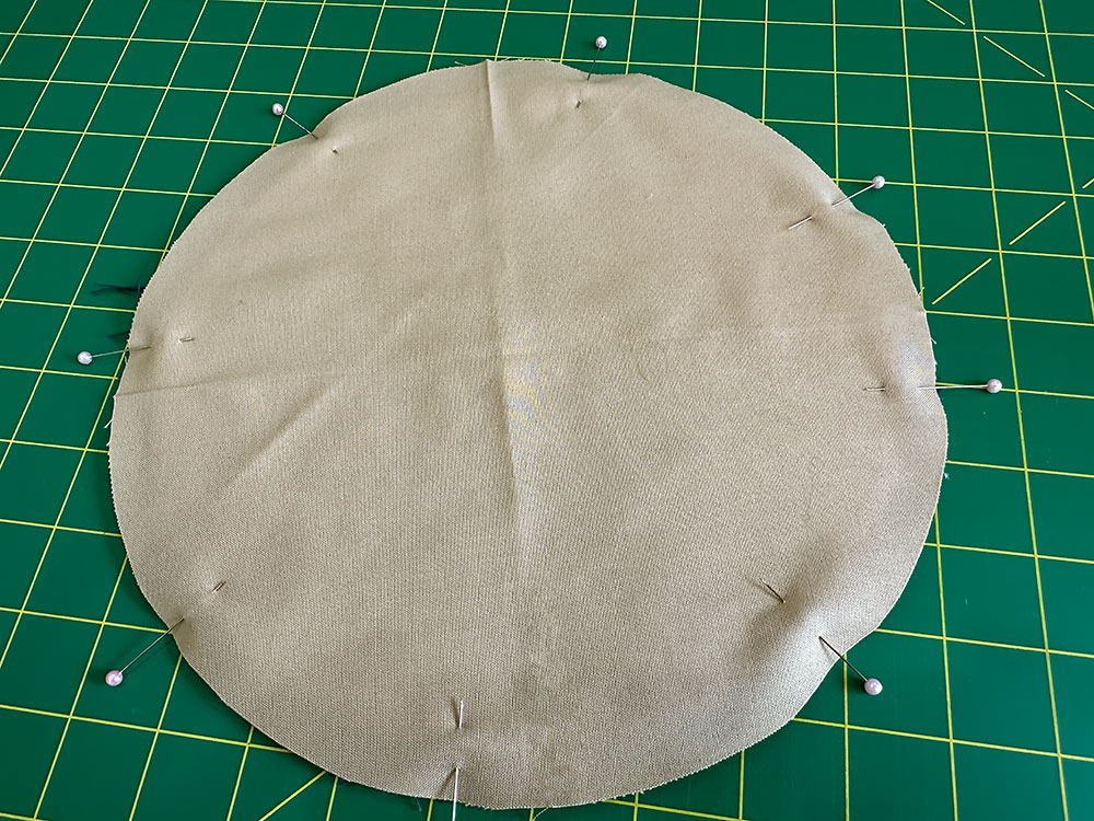 - The first step is to fold the base panel in half vertically and then horizontally to find the four quadrant points of the circle, like the four main points on the face of a clock (12:00, 3:00, 6:00, 9:00). You can see in the photo above that these folded quadrant lines are already in place on our lining base panel.