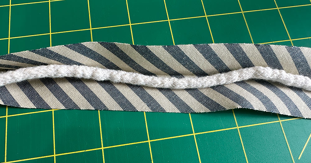 - Cut the piping cord to match the bias strip.